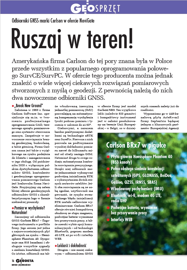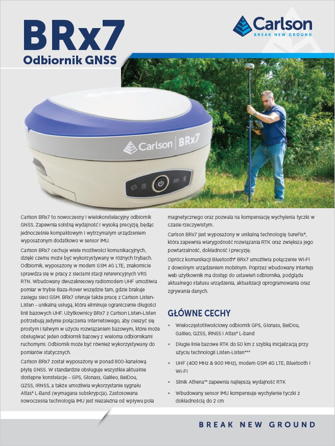 Carlson BRx7 – wielokonstelacyjny odbiornik GNSS wyposażony w sensor IMU