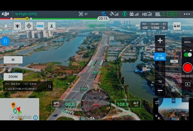 Nowy interfejs użytkownika pozwala na szybkie przełączanie między widokami z kamer. Umożliwia podgląd z kamery o rozdzielczości 20MP z zoomem, kamery termowizyjnej, a także szerokokątnej. Ponadto, seria H20 pozwala korzystać z nowych, inteligentnych funkcji. Znajdziemy wśród nich PinPoint & Smart Track (automatyczne śledzenie i wyświetlanie współrzędnych wybranego obiektu) oraz funkcji Al. Spot-Check. Ta ostatnia umożliwia rozpoznanie zaznaczonego przez użytkownika obiektu. Co więcej, pozwala wykonywać misje automatyczne, zachowując wskazany obiekt cały czas w centrum kadru.