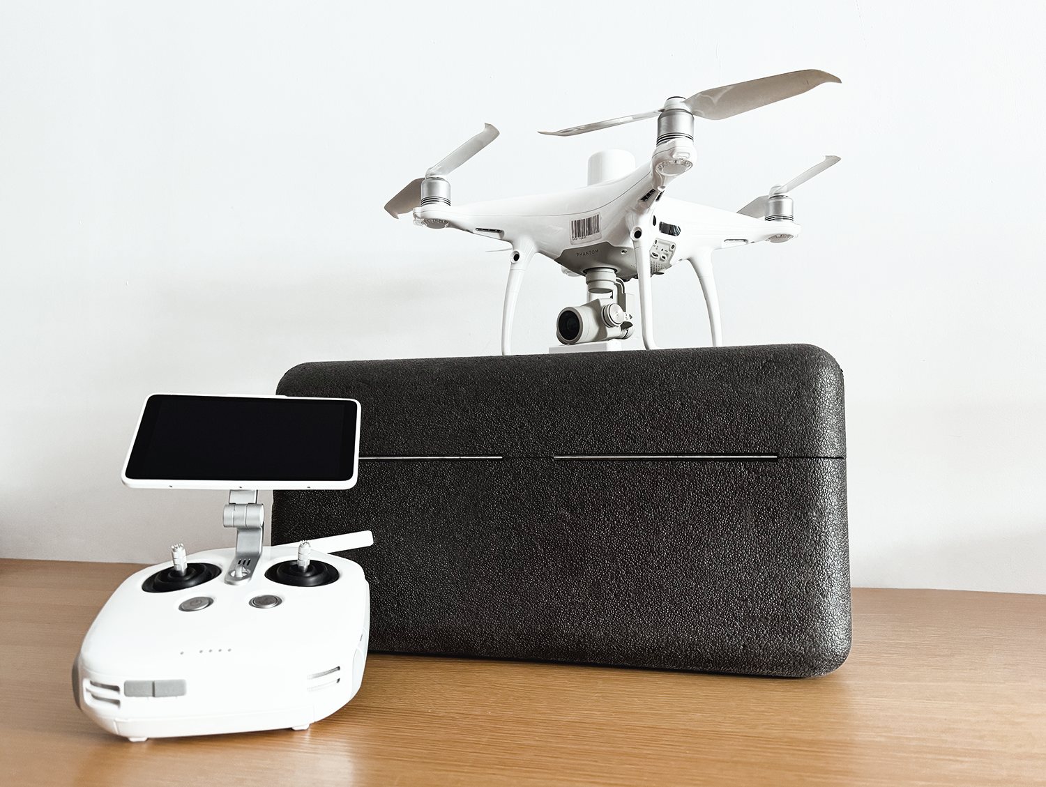Używany dron DJI Phantom 4 RTK do fotogrametrii i geodezji. Ten zestaw DJI Phantom 4 RTK zawiera: 6 baterii; aparaturę sterującą; baterię aparatury sterującej; ładowarkę, hub do ładowania na 3 baterie.