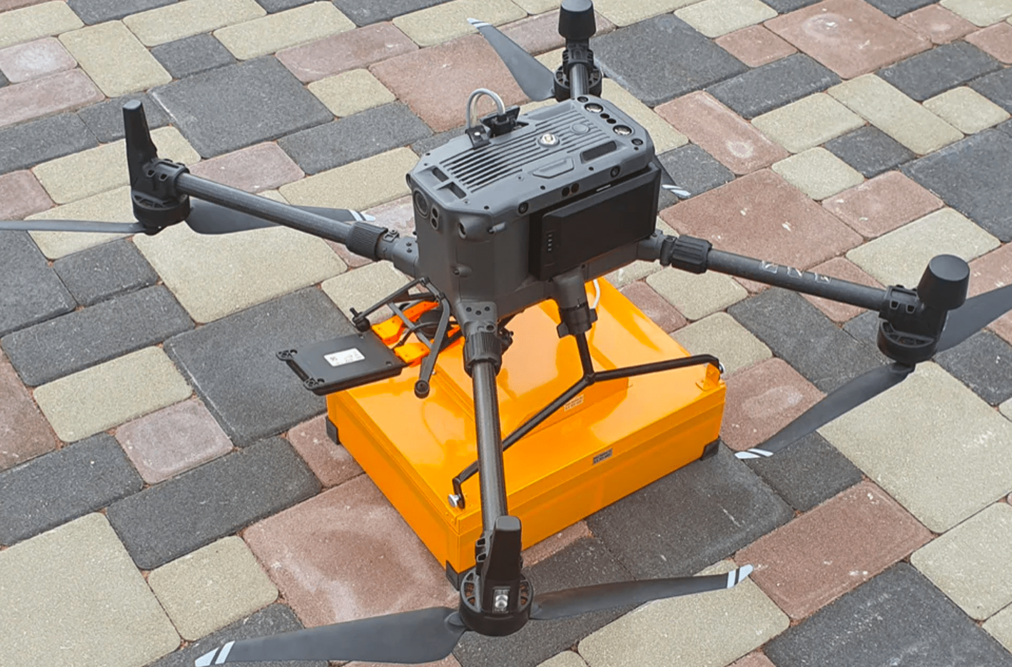 Zond Aero 500 zawiera w zestawie skrzynkę transportową i mocowania do drona DJI Matrice 300 RTK lub DJI M600 Pro.