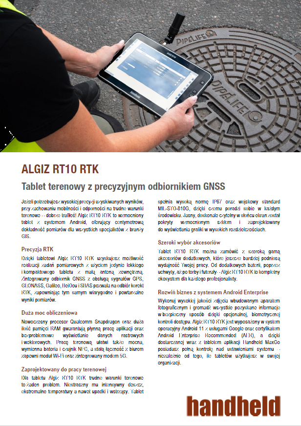 Jeżeli potrzebujesz wysokiej precyzji uzyskiwanych wyników, przy zachowaniu mobilności i odporności na trudne warunki terenowe – dobrze trafiłeś! Algiz RT10 RTK to wzmocniony tablet z systemem Android, oferujący centymetrową dokładność pomiarów dla wszystkich specjalistów z branży GIS.