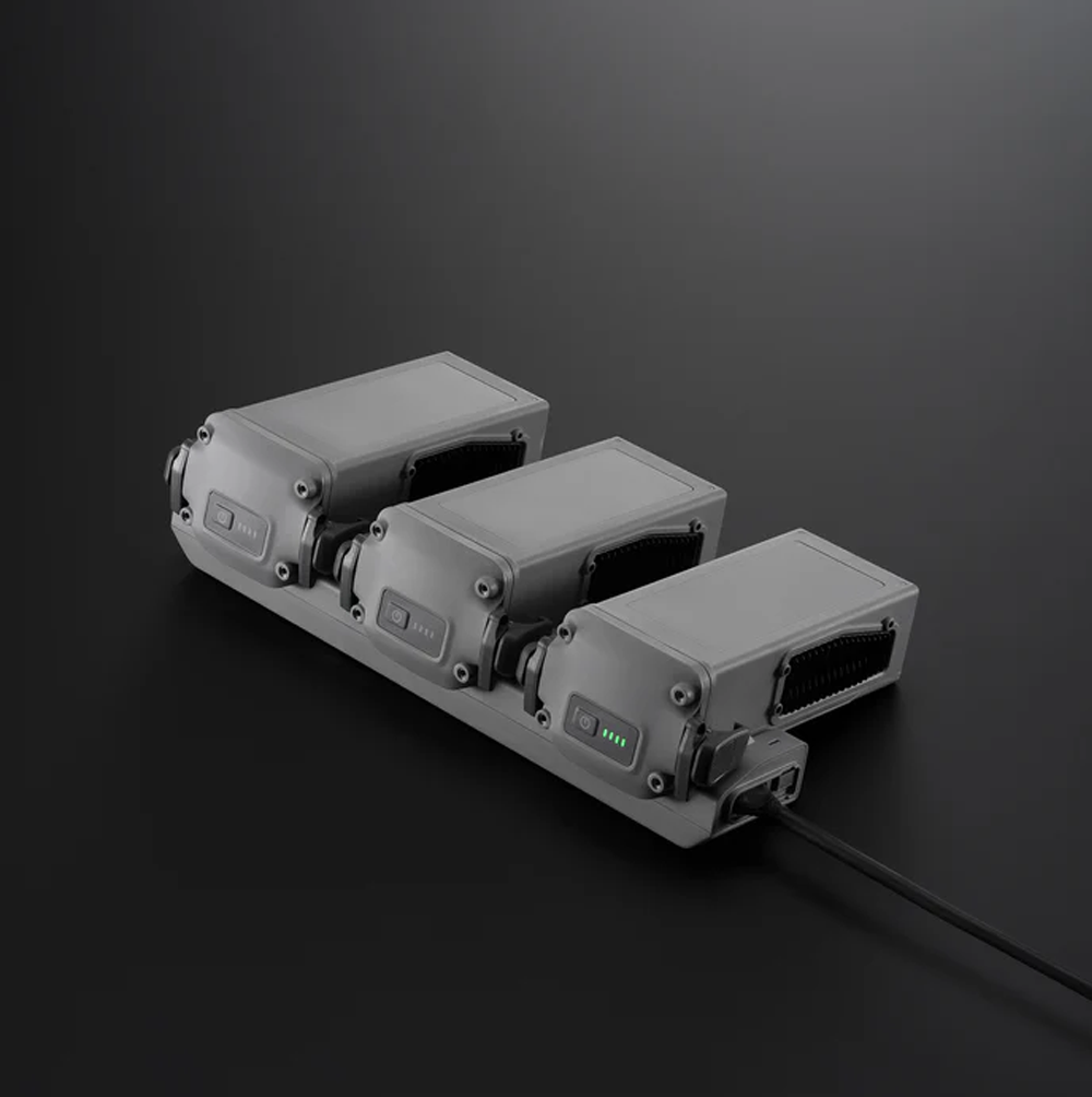 Hub ładujący został zaprojektowany specjalnie do inteligentnych akumulatorów do dronów DJI Matrice 4D. Praktyczne akcesorium umożliwia wydajne zarządzanie energią podczas pracy z użyciem dronów DJI Matrice 4D. Hub pozwala na sekwencyjne ładowanie do trzech inteligentnych akumulatorów, obsługując akumulatory od wysokiego do niskiego poziomu mocy.