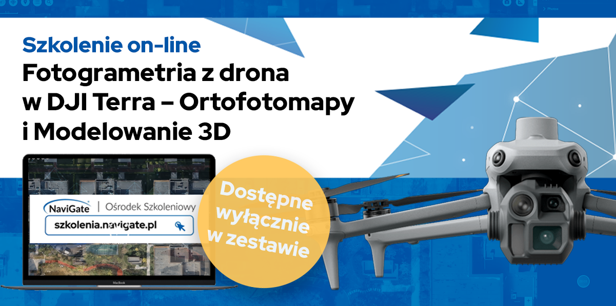 Kompletny zestaw geodezyjny: DJI Matrice 4E, roczna licencja DJI Terra i Szkolenie on-line „Fotogrametria z drona w DJI Terra – Ortofotomapy i Modelowanie 3D”
