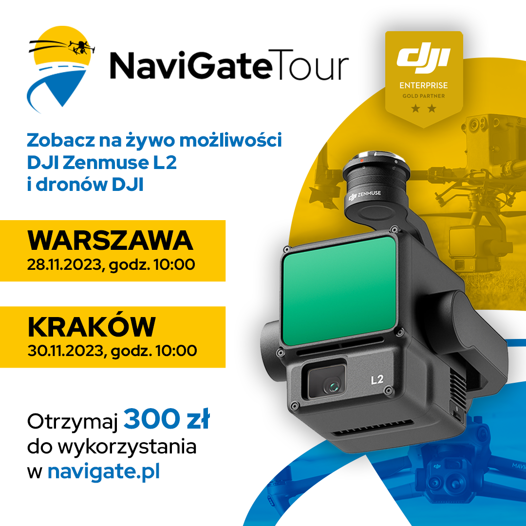 Zobacz w akcji najnowszy skaner laserowy DJI Zenmuse L2 i wszystkie czołowe produkty DJI przeznaczone dla profesjonalistów! Przejdź tutaj, aby zarejestrować się na wydarzenie NaviGate TOUR 2023 w Krakowie lub w Warszawie.